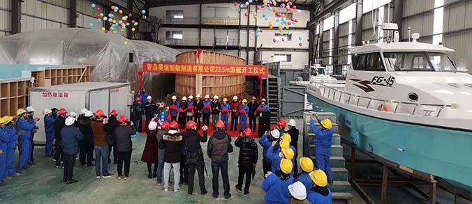 2019年1月8號(hào)昊運(yùn)船艇24米游釣艇開工儀式,昊運(yùn)船艇邀請(qǐng)青島船級(jí)社領(lǐng)導(dǎo)、用戶及設(shè)備供應(yīng)商共同剪彩。